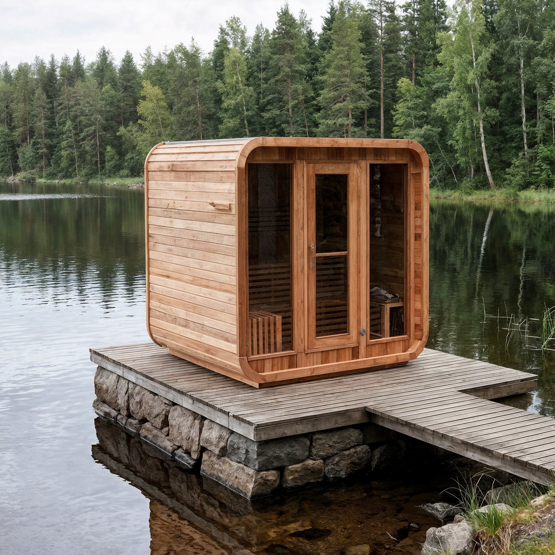 Each sauna comes with a Harvia SW60 stove, volcanic stones, wooden barrel and spoon, sandglass, thermo-hygrometer, and explosion-proof light.