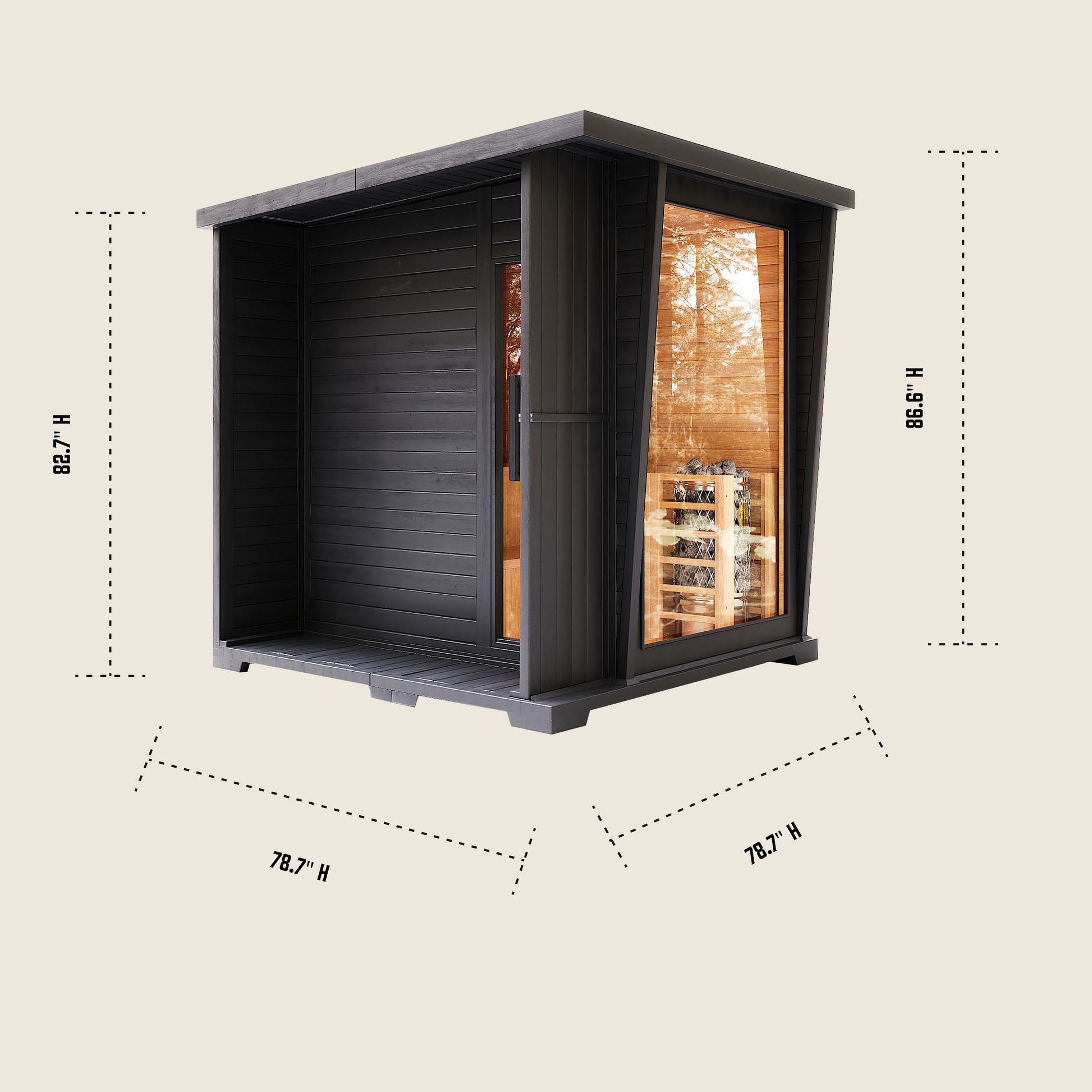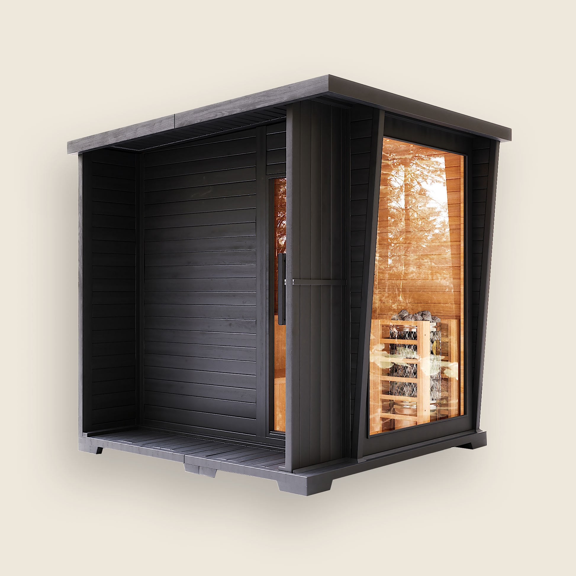 The Outlaw is a bold 4–6 person outdoor sauna designed to effortlessly transform any space into a premium wellness retreat. With its rich wood interior, sleek exterior panels, and expansive glass front, it invites deep relaxation and turns everyday routine into a restorative ritual. Built for performance, presence, and enduring outdoor luxury, it brings a refined calm to any setting.